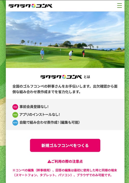 ゴルフコンペ幹事支援サービス「ラクラクコンペ」について