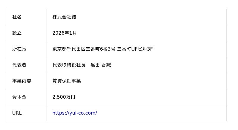 SOLIZEグループの+81株式会社の100%子会社として2026年1月8日に設立された株式会社結(本社:東京都千代田区、代表取締役社長:黒田香織)は、2026年1月15日に高齢者が安心して自分らしい住まいを選べる社会の実現を目指し、シニア向け家賃保証サービス「いえ結び」を正式リリースしたことをお知らせします。