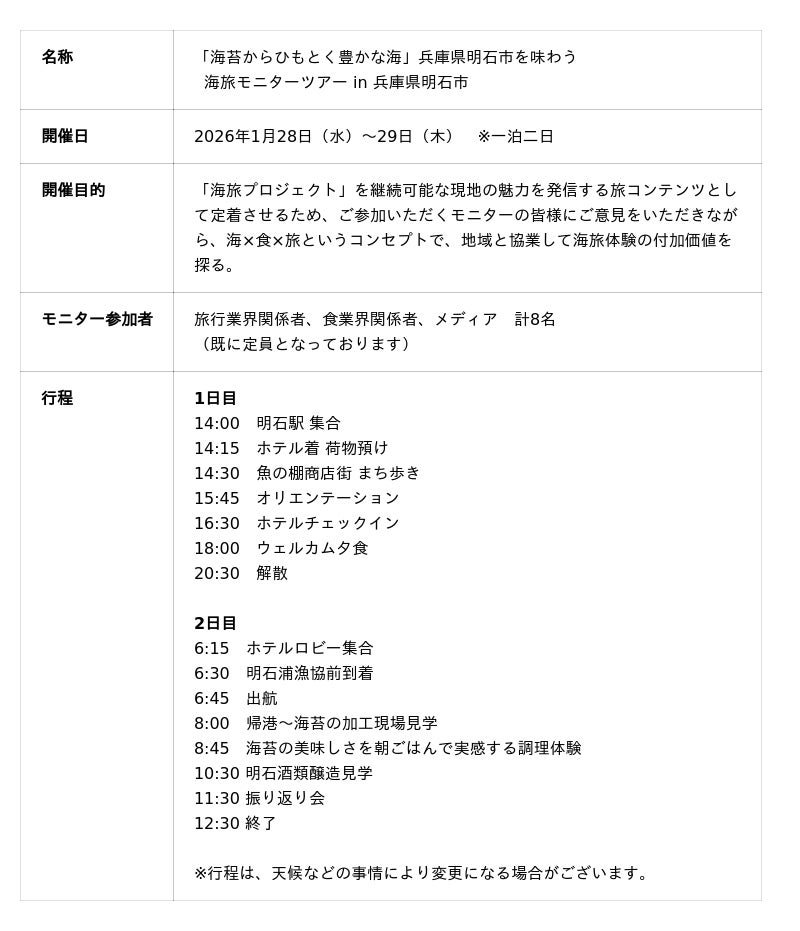海旅モニターツアー in 兵庫県明石市 開催決定