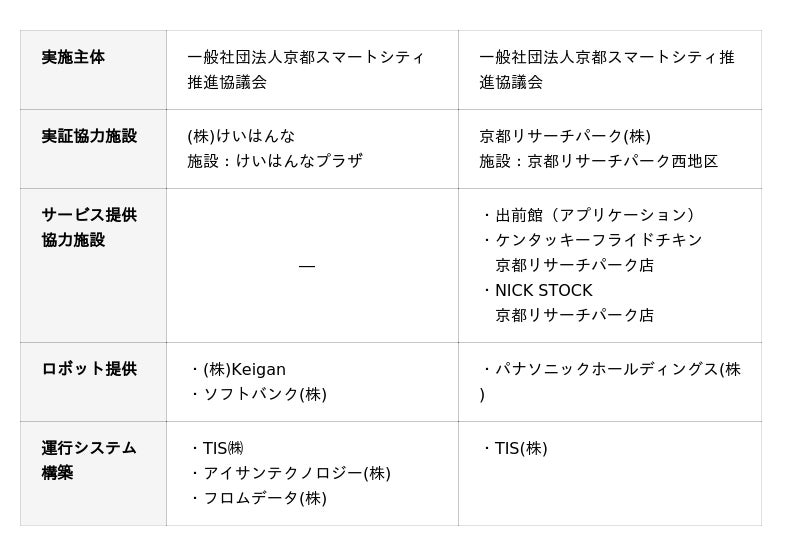 (1) 背景と目的現在、人手不足に対するロボット活用のニーズは高まっているものの、事業性・複数台の安全走行の課題等により社会普及が本格的に進んでいない状況にあります。そこで、デジタル庁の複数モビリティの分散協調運行基盤等の在り方に関する実証調査研究の事業委託を受け、けいはんな学研都市及び京都リサーチパーク地区にて複数種のロボットの安全走行実証や実サービスの実証実験を行います。ロボットが安全・有効的に利用される仕組みの検証を通じて、ロボットが広く社会に普及し、社会課題を解決する姿を目指しています。
