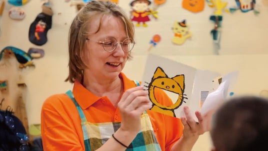 まだ言葉を話しはじめる前の時期から、音楽やリズム、絵本やカードを通じて英語の音や表現に親しみ、「楽しい経験」として自然に英語にふれられるよう保育に取り入れています。
