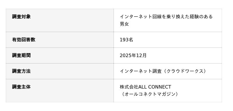 通信インフラ事業と地域振興事業を手掛ける株式会社ALL CONNECT(代表取締役社長:岩井岩井宏太・本社:福井県福井市)が運営する通信メディア「オールコネクトマガジン(https://all-connect.co.jp/magazine/)は、ネット回線ユーザー193人を対象に乗り換え時のストレス調査を行いました。