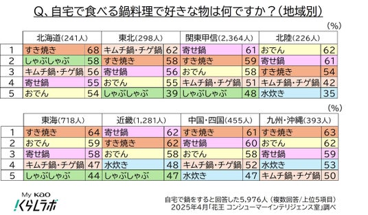 花王株式会社では、「My Kao くらしラボ」サイト読者を対象に、好きな鍋料理とおうち鍋での困りごとについて調査を実施し、その結果を「My Kaoくらしラボ」(※1)にて2026年1月20日に公開します。