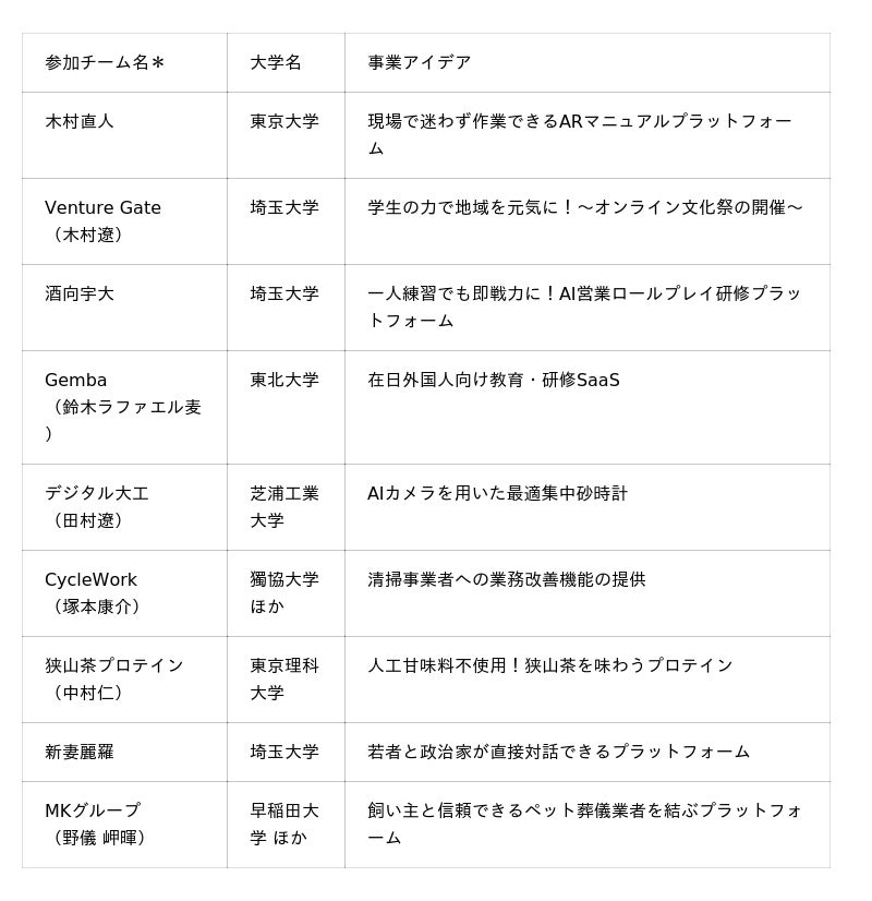 株式会社ツクリエ(本社:東京都千代田区 代表取締役:鈴木英樹 以下、ツクリエ)は、埼玉県のイノベーション創出拠点「渋沢MIX」のコンセプトの1つである「イノベーションを担う人材の育成」の一環として、学生のビジネスアイデアの事業化を支援する起業伴走プログラム「渋沢MIX学生向け起業伴走プログラム『GAKU∞STA(以下、ガクスタ)』」を受託運営しています。