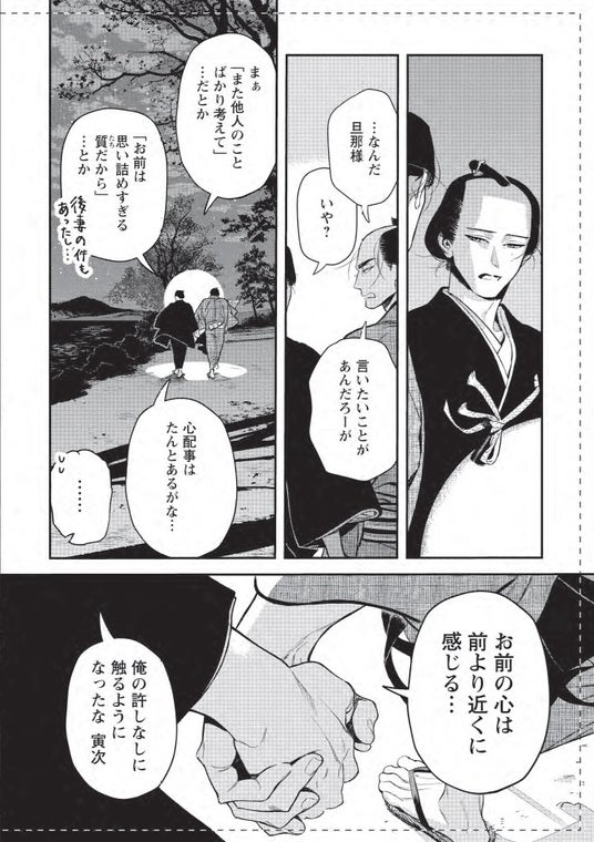 寅次と八重辰が再会してから、また7年の月日が経った。ぐんぐんと背が伸び、その魅力を周囲に振りまくお天の姿に、父親ふたりは気が気ではない。そんな幸せな日常に浸りながらも、自分たちが実らせた初恋が娘の顔を曇らせていないかと苦悩していたある日、料亭・千枝屋が火事に見舞われ…?