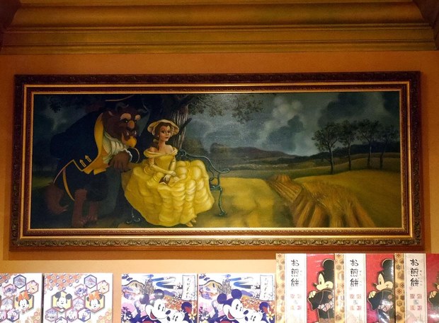 パークエントランス側に飾られた、「美女と野獣」の絵にご注目。