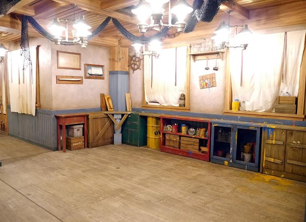 ダッフィーのショー「マイ・フレンド・ダッフィー」が開催される、建物に向かって右側のダイニングエリア。この後方は作業場の様な空間になっています。