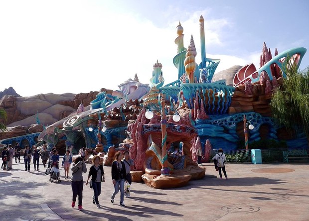 マーメイドラグーンの入り口上部には、大きな城の様な部分があります。この周辺を、アラビアンコーストからの橋を歩いて渡り、少し進んで斜め上を見上げてみると……?