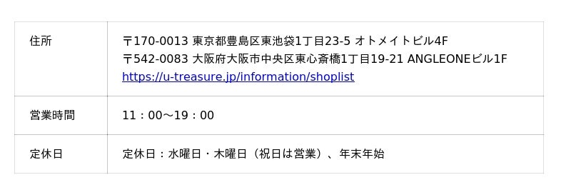 お客様のお問い合わせ窓口(ユートレジャーオンラインショップ)◆お問い合わせフォーム>> https://u-treasure.jp/contact