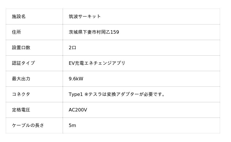 最初の設置先として、活用頻度が高い筑波サーキットに9.6kW出力の普通充電器を2口設置し、1月19日より利用を開始いたしました。