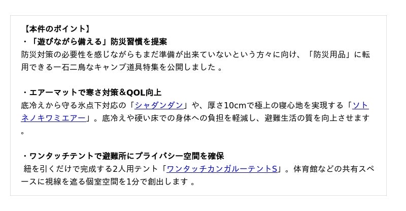 避難所の「底冷え・硬い床・プライバシー」を解決。キャンプメーカーがオススメする災害時のQOLを向上させるグッズを紹介。