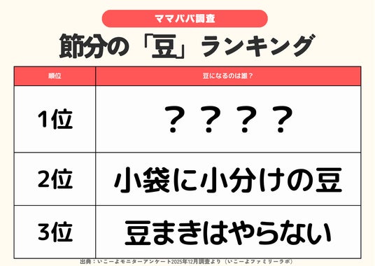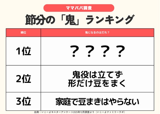 国内最大級の子供とお出かけ情報サイト「いこーよ」を運営するアクトインディ株式会社(東京都品川区 代表取締役:下元敬道 以下、アクトインディ)では、アンケート調査や取材からリアルな親子の行動を浮き彫りにする「いこーよファミリーラボ」にて子育て世帯に、「2026年の節分の豆まきの予定や準備方法、家庭で大切にしているポイント」についてアンケート調査を実施しました。