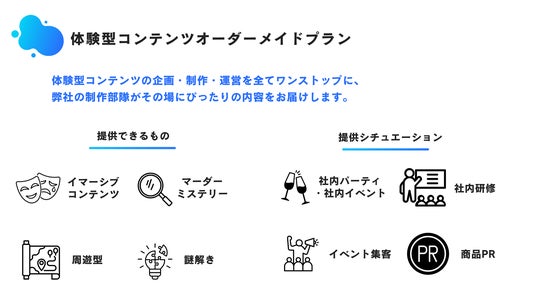 数々のヒット作を世に出してきた体験型エンタメ企画会社が、謎解きや宝探し、マーダーミステリーを駆使した集客コンテンツ、研修プログラムを提供