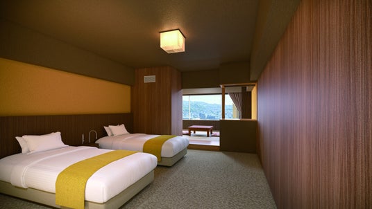このたびのリニューアルにより、全客室が「和色」をテーマにした、和モダンな空間に生まれ変わります。稲佐山の中腹に位置する当館の客室からは、長崎の1,000万ドルの夜景を一望いただけます。