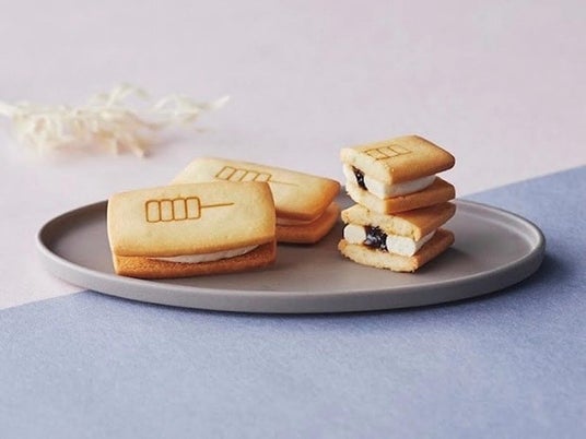 みたらしバターサンド(5個入) 1,550円 甘辛のみたらしタレと大吟醸香るバタークリームを、サクサクのクッキーでサンドした新感覚スウィーツです。