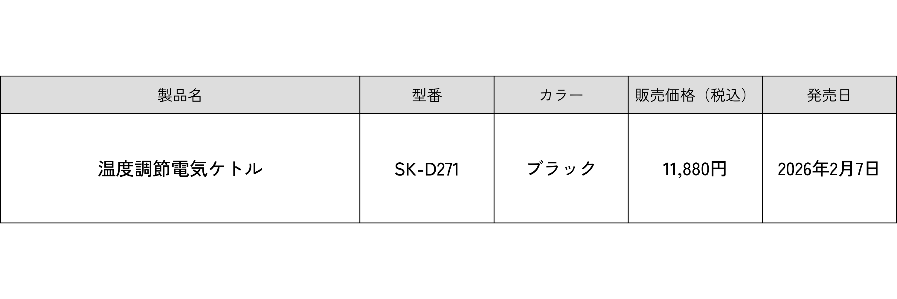 シロカ株式会社(東京都・千代田区)は、1℃単位で自由に温度を設定でき、よく使うお気に入りの設定温度をワンタッチで呼び出せる「温度調節電気ケトル」を2026年2月7日に発売します。