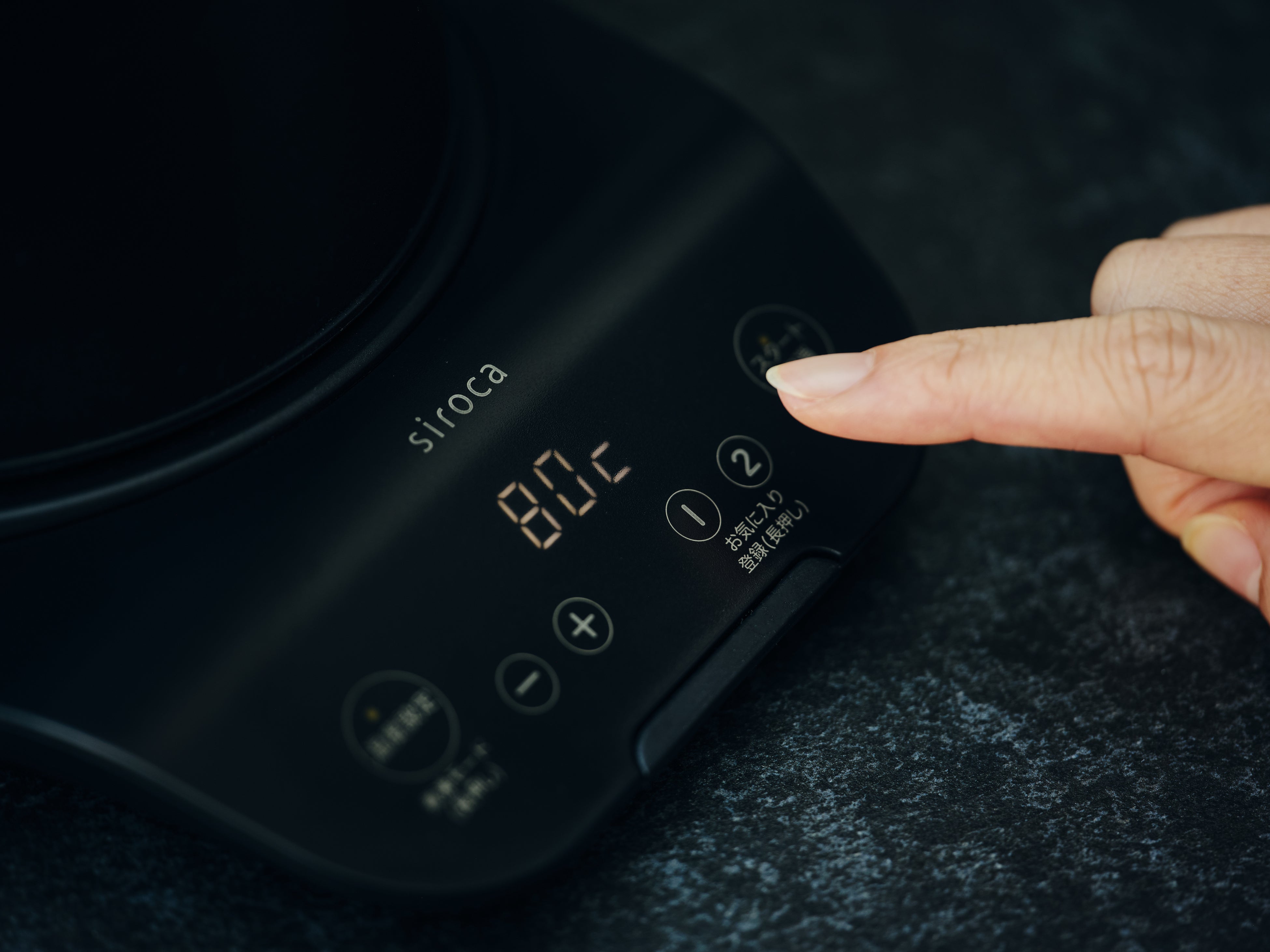 1. 1℃単位のお好みの温度で湯沸かし2. 「お気に入りボタン」で好みの温度までワンタッチ