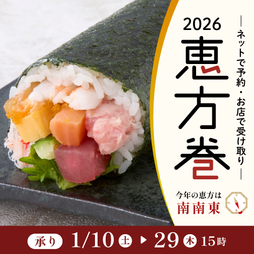 節分の日に、その年の恵方を向いて黙々と食べることで福を招く恵方巻。七福神にちなんだ7種類の縁起の良い具材を巻いた定番の恵方巻をはじめ、海鮮がたっぷりと入った見た目にも華やかな恵方巻や、各ショップの看板商品を詰め込んだ恵方巻など、バリエーション豊富に取り揃えました。