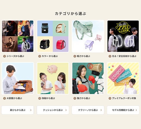 公式オンラインショップでは多彩なランドセルをカテゴリから選べます