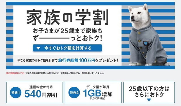 学割のキャンペーン割引は子供が25歳になるまで継続します。これは当然ですが、驚くべきは家族への割引期間です。
