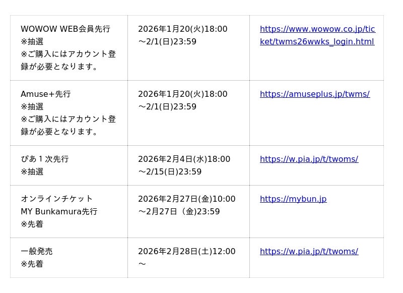 ◆お問合せ :キョードー東京 0570-550-799( 平日11時~18時 / 土日祝10時~18時)