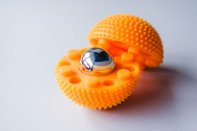 まずはボールをそのまま転がす使い方。手のひら、太もも、ふくらはぎなどに当てて、ツボ押しのように使います。