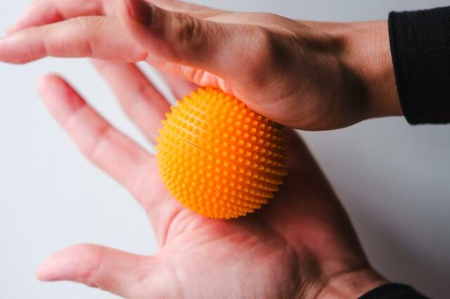 ボール自体が小さい分、手のひらや足裏に当てるとピンポイントでしっかり刺激できるのもうれしいポイントです。