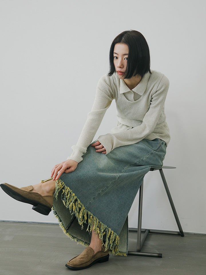 アシメフリンジデニムスカート ¥8,800 (tax incl.)