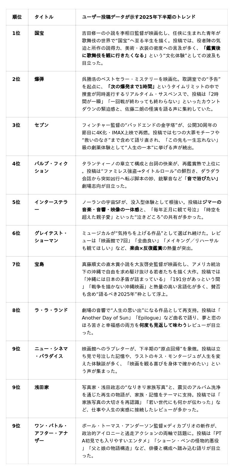 ■ 「Lovvit」2025年 ポジティブ・レビュー映画ランキング(TOP11)