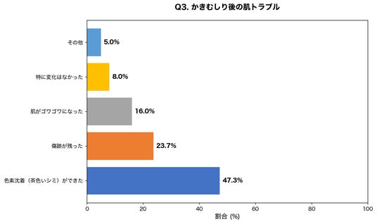 ・かきむしり経験者の47.3%が色素沈着・かき跡に悩んでいると回答