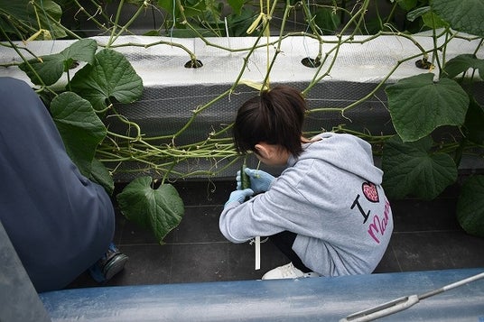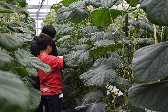 スマート農業の研究拠点を、地域の子どもたちの学びの機会として活用。九州大学との共同研究から生まれたきゅうりを、野の花学園の児童が収穫。先端技術と食育を融合させた、地域密着型の収穫イベントを開催!
