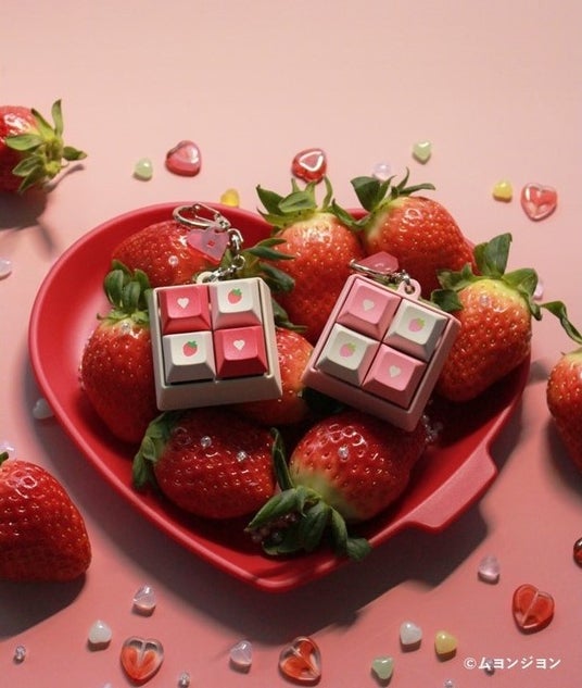 バレンタイン限定で、いちごをテーマにしたキーボードキーリングも販売!シーズンカラーのキーキャップと特別なアクリルチャームを組み合わせた限定アイテムをお見逃しなく。