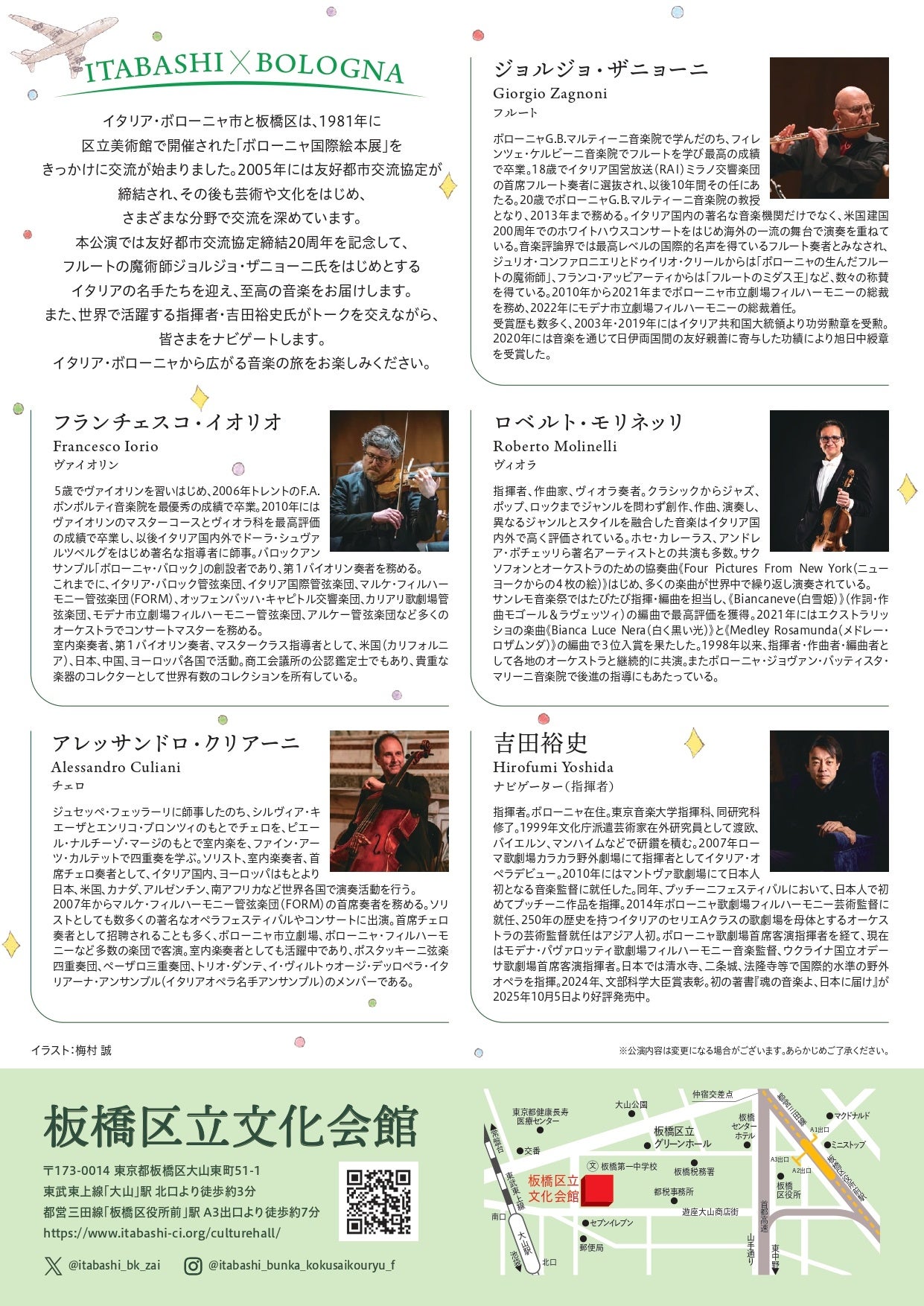 板橋区×ボローニャ市 友好都市交流協定締結20周年記念コンサート『旅する音楽~フルートと弦楽の響きにのせて~』
