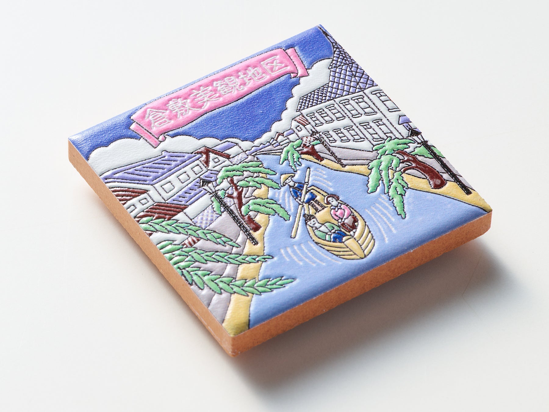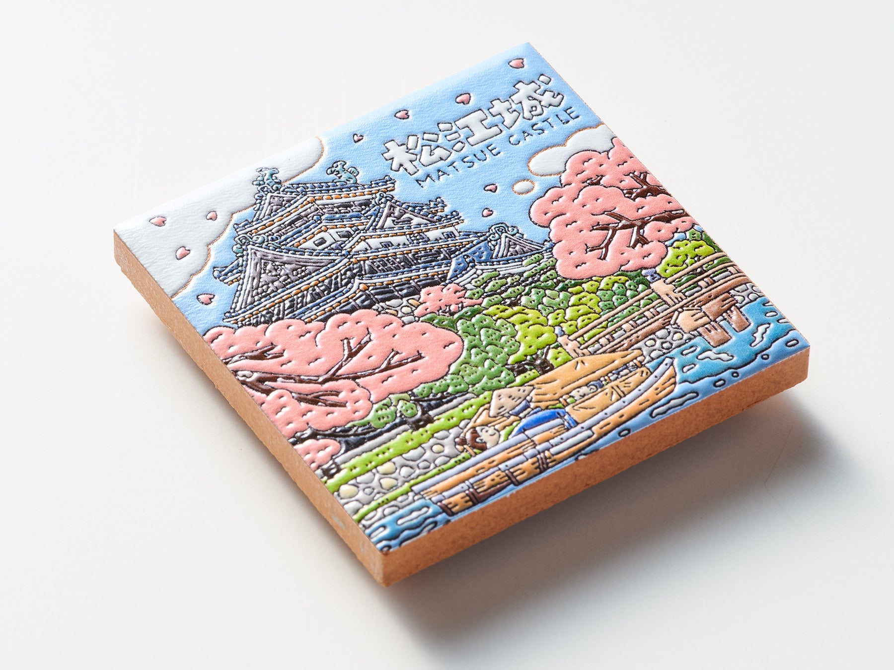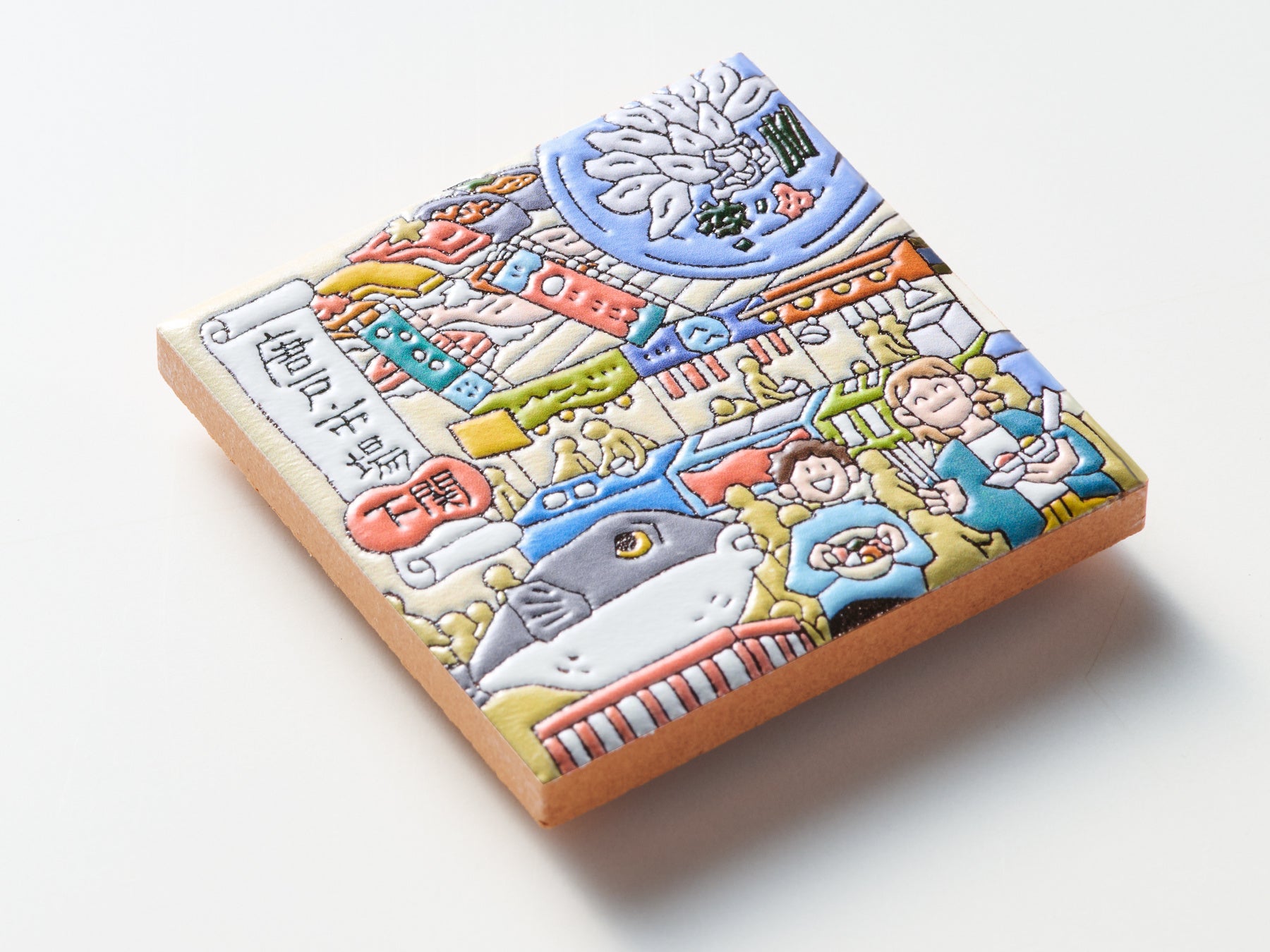 ご当地クリエイターが描いたイラストをもとに、宮城県女川町の「みなとまちセラミカ工房」が15cm角のスペインタイルを制作、そのタイルをスキャンしてPENON独自のプリント技術で立体化するという3段階の工程を経て、スペインタイルの特徴を活かした『旅するマグネット』を仕上げています。