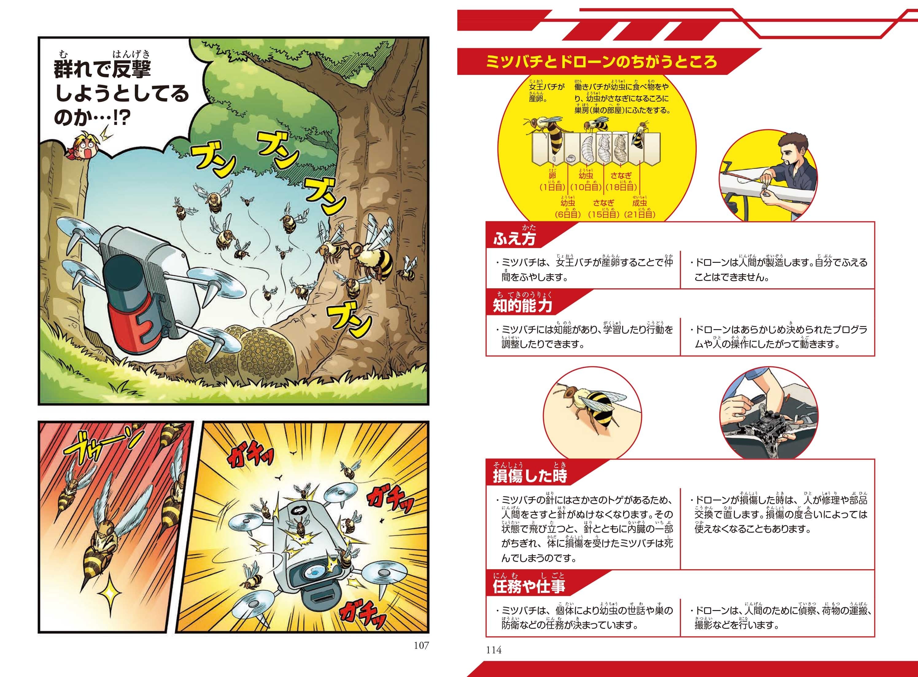 さらに本書では、動物の姿や生態が人間の技術開発のヒントになったとも言われる、生物規範工学(バイオミメティクス)の考え方も紹介。地図なしで家に飛んで帰ることができる鳥、音を頼りに仲間を見つけることができるイルカなど、私たち人間以外の動物は、機械の発明はできないけれど、驚くほど高度な能力を持つことが分かっています。こうした能力をヒントに、さまざまな技術が応用されているのが生物規範工学です。その知識を身に付けることができるのも特徴となっています。