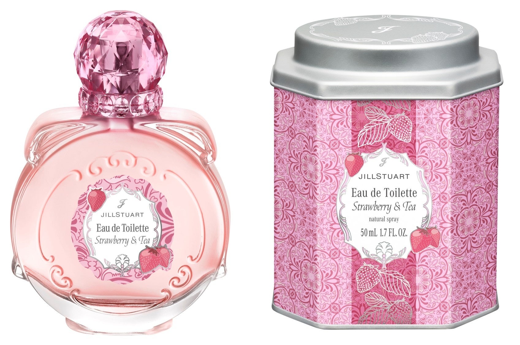 香り高い紅茶にフレッシュないちごを添えた、甘酸っぱいストロベリー&ティーの香りのオードトワレ。ベルガモットとクラリーセージ、ローズマリーで表現した上質な紅茶に、チェリー、リーフィグリーン、ガルバナムを合わせたフレッシュなストロベリーを加えて。さらにスウィートとパウダリーで、茶葉の心地よい余韻を演出しています。紅茶缶をイメージしたパッケージは、オードトワレを取り出した後も手もとに残して、JILL STUARTの世界観を楽しみ続けられるデザインです。