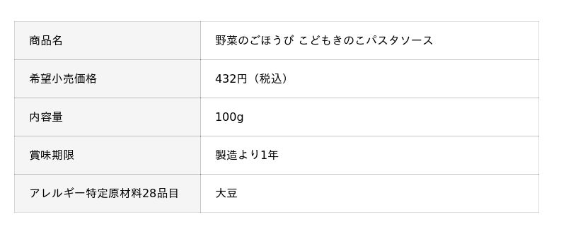 2月に新たに仲間入り予定! 『野菜のごほうび こどもきのこパスタソース』