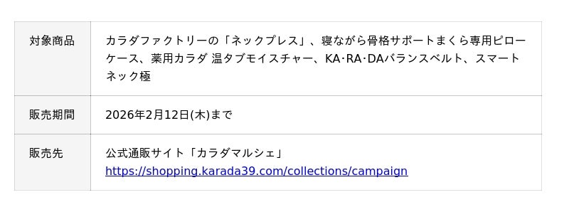 カラダファクトリー公式通販サイト「カラダマルシェ」にて2026年2月12日まで開催