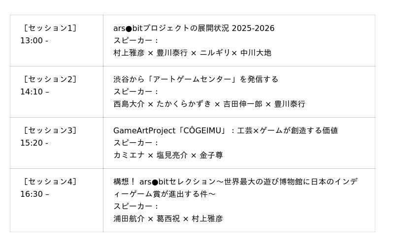 ゲームを軸にアートやエンタメを横断するプロジェクト「ars●bit(アーソビット)」は、2026年2月8日・15日に東京・渋谷の「404 Not Found」にてシンポジウムを開催します。本企画は、渋谷全域を舞台とする「Shibuya Games Week」の一環として実施。「これはゲームなのか?展3」の出展作家らによる活動報告や作品紹介に加え、プロジェクトの集大成となるアジア・アメリカ・ヨーロッパへの海外展開に向けた展望を語ります。