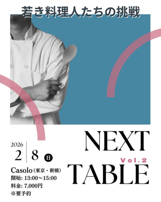 その一皿に、料理人の“すべて”が込められている。NEXT TABLEは、若手料理人たちが、自らの想い・技術・世界観をかけて挑む、未来に向けてのイベント。素材選びから構成、調理、プレゼンテーションまで──すべてに彼らの個性と覚悟が表現された一皿は、ただの料理ではなく、“物語”そのもの。NEXT TABLEは、観るイベントではなく“感じる”イベント。若き才能たちの挑戦、その瞬間にしか生まれない一皿。一緒に悩み、迷い、そして完成の感動を分かち合う。食べることで、誰かの人生を応援する。これは未来を変える“食のドラマ”をともに味わう体験です。