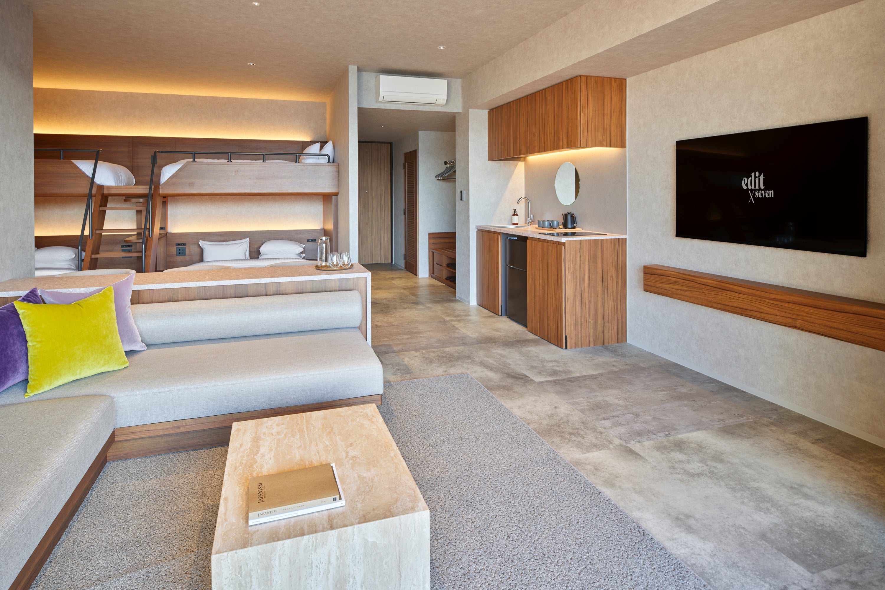 「edit x seven」(エディット バイ セブン)は、「seven x seven」の世界観を新たなかたちで表現したホテルです。洗練と快適性を追求するスピリットを受け継ぎながら、「edit」の視点でその本質を丁寧に編集。自由さや自発性、そして“自分らしい人生を楽しむこと”にフォーカスし、より軽やかに、より自在に旅を愉しむためにデザインされています。自分らしく過ごすことを大切にした、自由で心地よい滞在を叶えるホテルです。