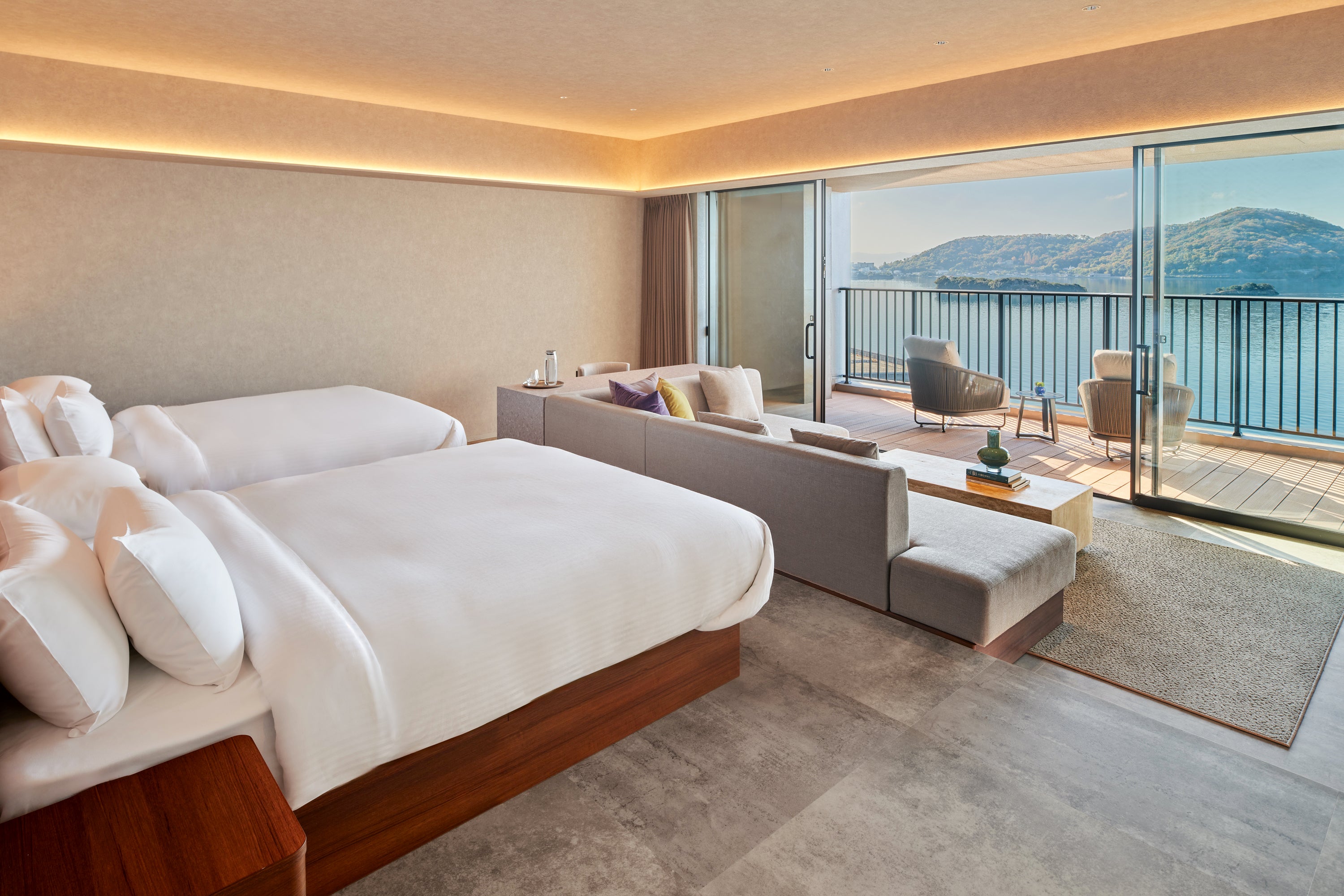 瀬戸内海に浮かび、海と山が穏やかに響き合う小豆島。この地に誕生する本施設は、全45室・9タイプの客室を備え、140平方メートル を超える客室から瀬戸内海を一望できるオーシャンビューの開放的な客室や、プール付きでプライベート感を重視したスイートルームなど、WEST棟とEAST棟でそれぞれ異なる客室タイプで、ご利用シーンや滞在スタイルに応じた、上質な滞在体験をご提供します。さらに、”どこにもないはずの楽園”をコンセプトとするサーマルスパ「eden SETOUCHI」を併設。刻々と表情を変える海を眺めながら、心と身体をゆるやかに整えるひとときをご用意しました。瀬戸内の海と島の恵みを取り入れたレストランとともに、自然と響き合う、唯一無二のホテルステイをお楽しみください。