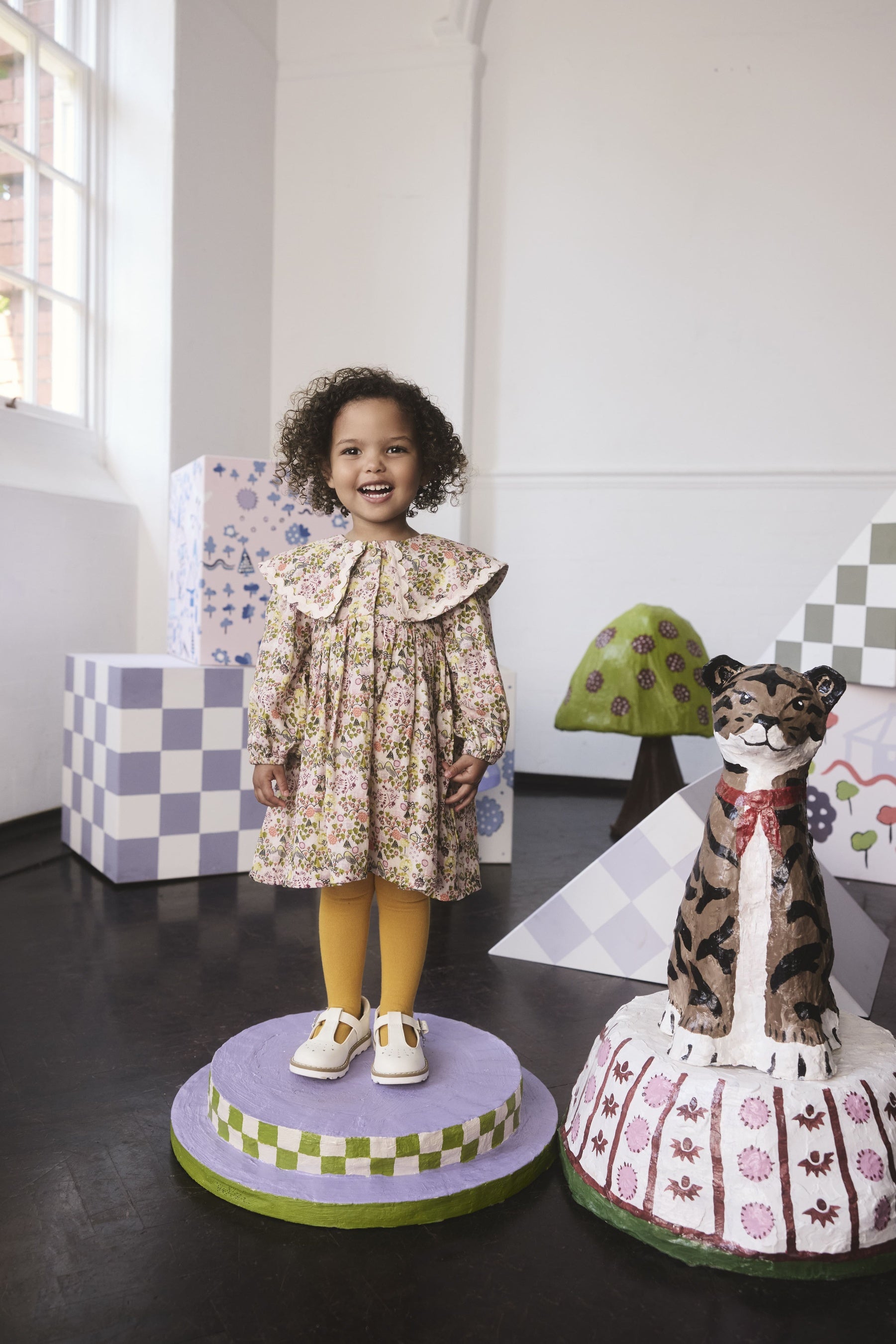 新柄のTiny Townをはじめ、動物や妖精など、想像力を掻き立てる子供達にぴったりのアートを用いてワンピースを中心に、ニットカーディガンや、スウェット&レギンスセットなどを展開。