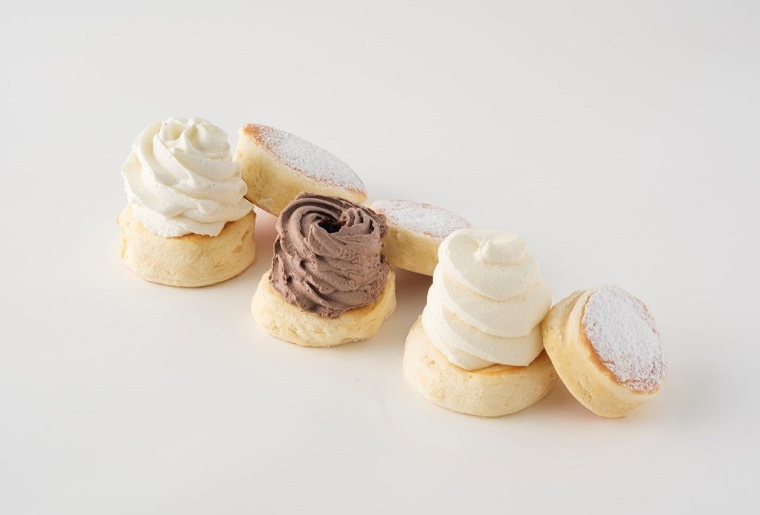 3種のフレーバーのクリームを小さく焼き上げたパンケーキでサンドしました。
