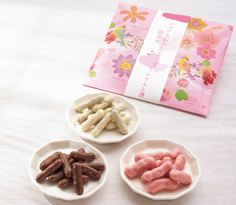 シナモン香るショコラかりんとから、人気のホワイト、ミルク、苺の3種を詰め合わせ。バレンタインだけの特別な商品です。