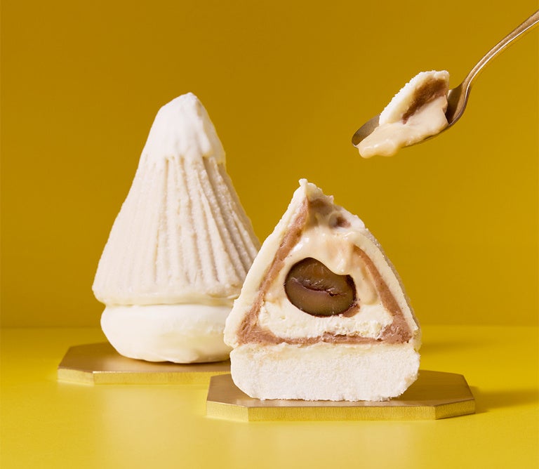 ラム香る洋栗クリームの山の中に、まろやかな和栗ソースをとろとろっとしぼって閉じ込めたスーパーメルティモンブランです。