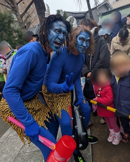 「2025年も園児の皆さんに風邪などひかず元気に過ごしてもらおう」と地元葛飾区内の保育園の節分豆まき会に岡野&高木「南葛青鬼」が参加。「鬼はそと福はうち」の掛け声で、南葛SC選手と一緒に園児の皆さんから2人の青鬼に思いっきり豆をぶつけて邪気退散してもらいます!