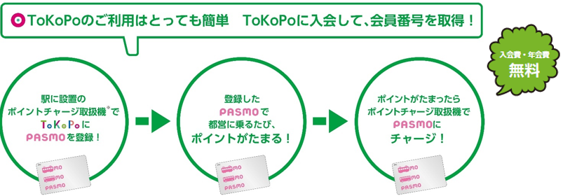 都営交通のポイントサービス「ToKoPo(トコポ)」は、記名式PASMOで都営交通(都営地下鉄、都営バス、東京さくらトラム(都電荒川線)、日暮里・舎人ライナー)に乗車するたびにポイントがたまるサービスです。