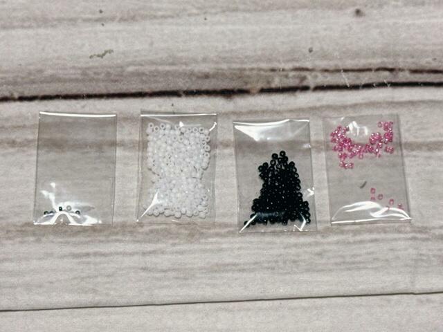 ブックには記載はありませんでしたが、ビーズを入れるトレイを用意するとビーズを拾うのが簡単になり、作業がしやすくなります。