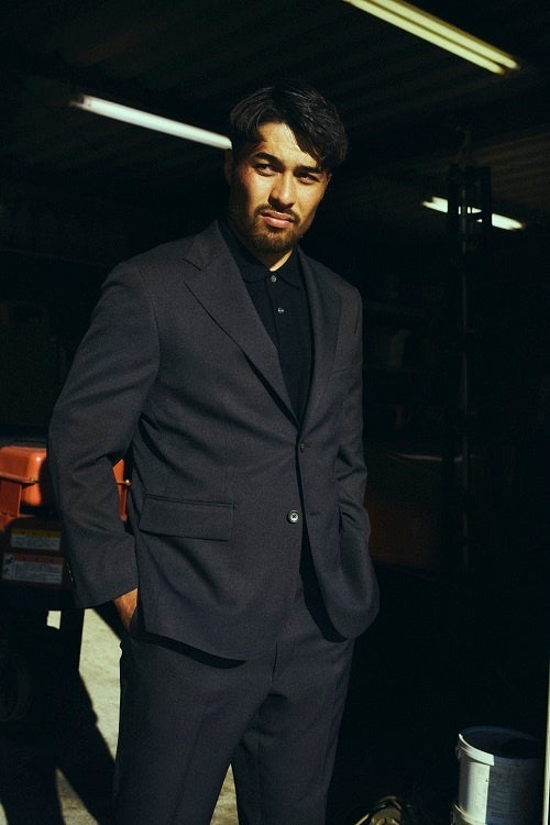 今回のオフィシャルスーツの選定にあたっては、実際にスーツを着用するブラックラムズ東京の選手もWisdom Toolスタッフとともにプロセスに参加。スーツ生地は幅広いシーンで着用可能な程よい暗さのチャコールグレーを協議の上で採用しました。インナーにはブラックのポロシャツをあわせ、チームカラーを基調としたモノトーンで、力強くも落ち着きのあるコーディネートとなっています。Wisdom Toolのこだわりのオーダースーツで、「ブラックラムズ東京らしさ」を表現しました。